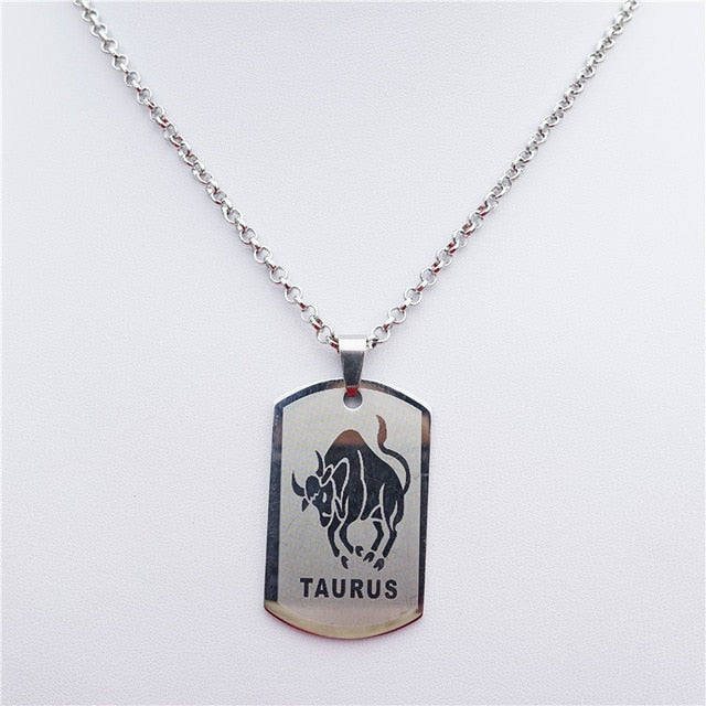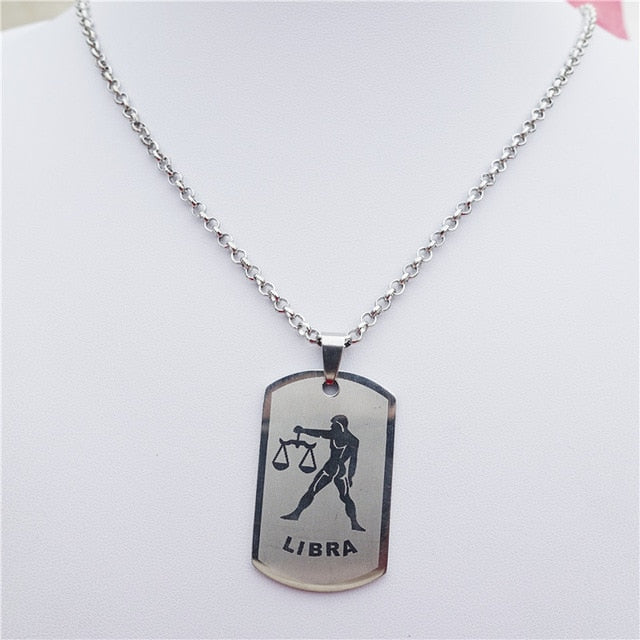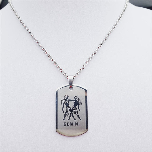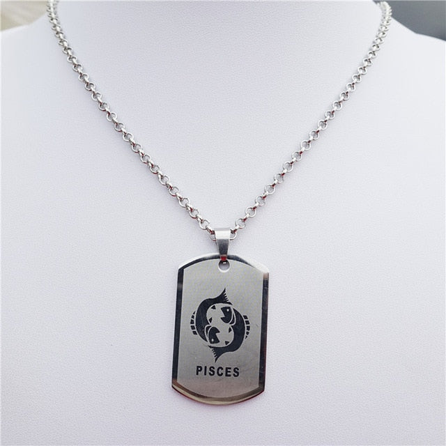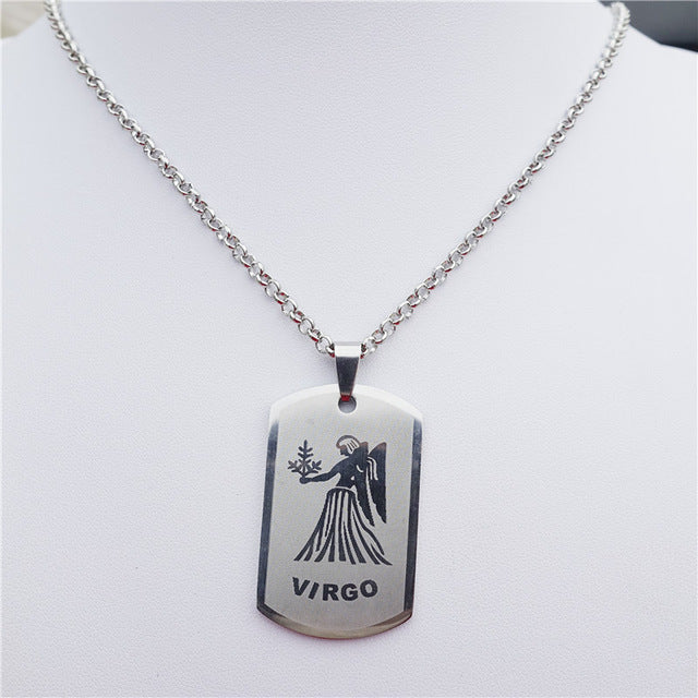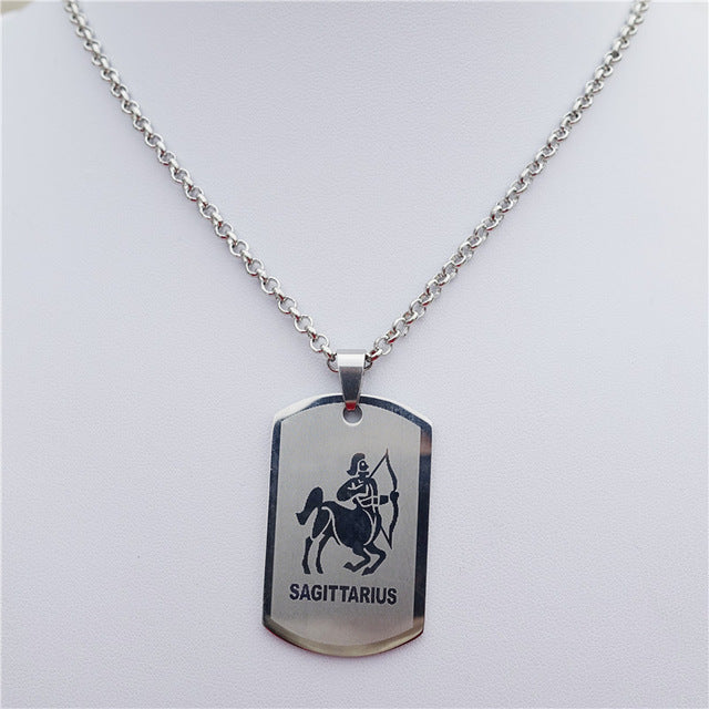 Zodiac 12 Horoscope Pendant Stainless Steel Constellations Necklace Jewerly For Men Women